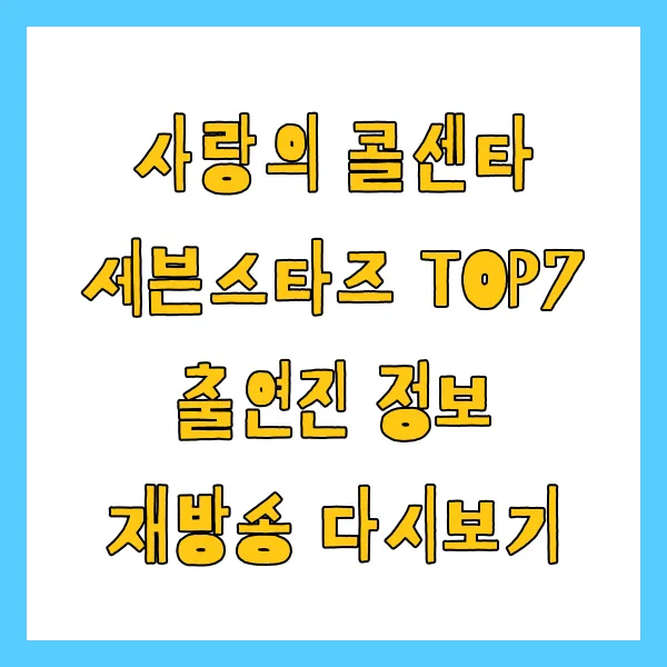 본방송을 놓쳤다고 아쉬워하지 마세요! 언제 어디서든 '사랑의 콜센타 세븐스타즈'를 다시 만날 수 있습니다.