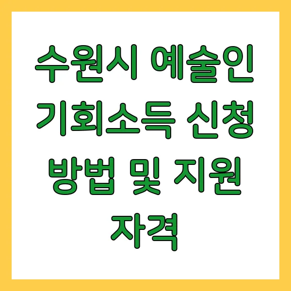수원시 예술인 여러분, 주목! 창작 활동에 날개를 달아줄 기회소득, 드디어 신청 시즌이 돌아왔습니다! 올해도 어김없이 수원시가 예술인 여러분의 열정을 응원하기 위해 두둑한 지원금을 준비했는데요. 놓치면 정말 아깝겠죠? 지금 바로 꼼꼼히 살펴보고 신청하세요!