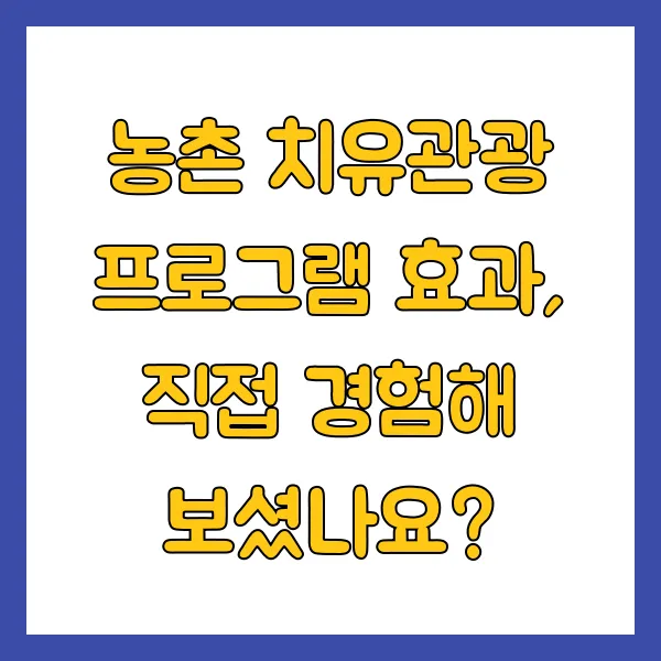농촌 치유관광 프로그램 효과, 직접 경험해 보셨나요?