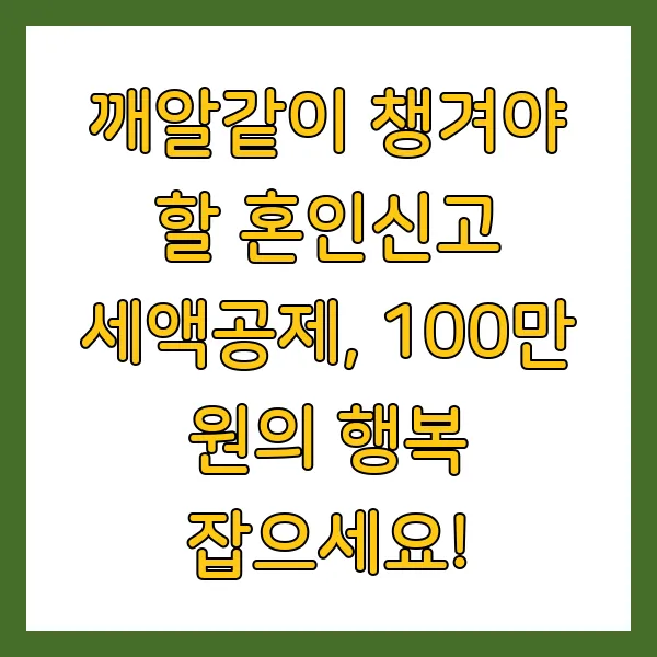 이처럼 혼인신고 세액공제는 신혼부부에게 큰 도움이 되는 제도입니다. 제공된 정보를 바탕으로 꼼꼼하게 준비하여 100만 원의 행복, 꼭 잡으시길 바랍니다!